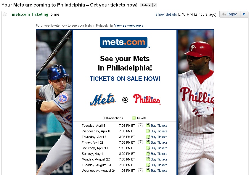 - LOLMets. For the ridiculous sourpuss face that RA Dickey makes when he throws his knuckleball. And for sending out this incredibly lame email yesterday asking their fans to buy tickets to games in Philadelphia: